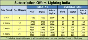 Lighting India – the only magazine of its kind covering the lighting industry in India as well as globally. Lighting India covers latest trends, innovations, technological finds, product reviews on Lighting Design, Automotive Lighting, Stage Lighting, Festive Lighting & Wedding Lighting, LED Signage & Displays, LEDs, Solid-state lighting, Drivers, energy efficiency, Industrial Lighting, Emergency Lighting, Security Lighting, Smart Lighting & IoT, Smart Home Lighting Solutions, IoT Lighting, Controls, Street Lighting, Heritage & Landscape Lighting, Heritage Buildings & Monuments Lighting, Garden Lighting, Horticulture Lighting, Architectural Lighting, Smart City Lighting, Residential Lighting, Commercial Lighting, Healthcare Lighting etc.